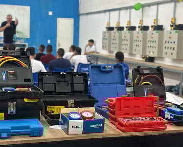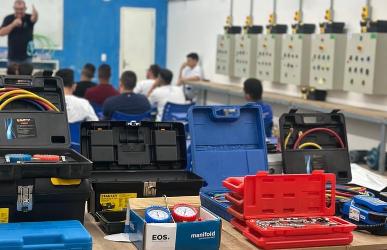 A turma de Mecânico de Climatização mergulha em conteúdos que unem teoria e prática, desde os princípios da refrigeração até a manutenção de equipamentos modernos de ar-condicionado. Um aprendizado voltado diretamente para o mercado de trabalho.