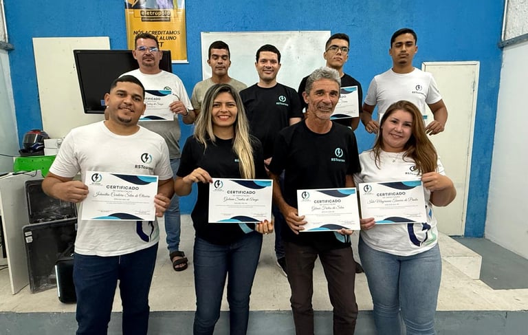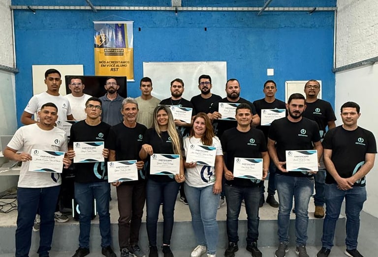 Com aulas práticas em laboratório equipado e professores de referência, a turma de Eletricista Predial da RST Cursos se destaca pela dedicação e pelo entusiasmo em construir uma carreira de sucesso no setor elétrico.